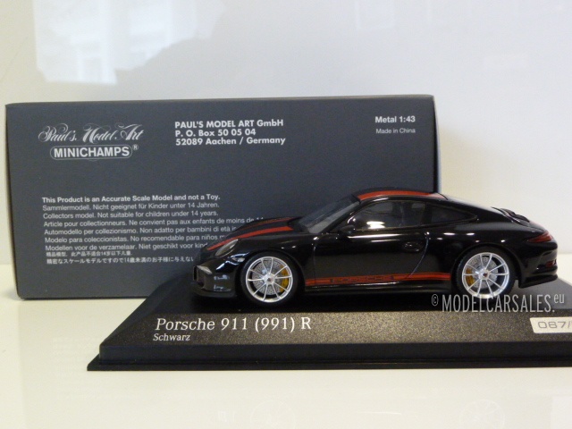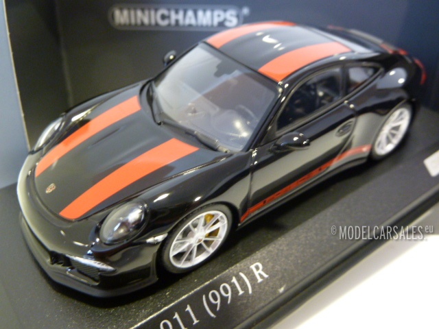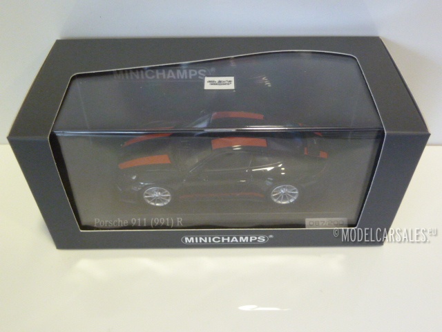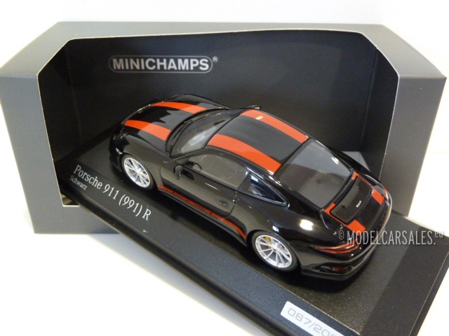 CA04316096 Minichamps Porsche 911 R (991) Black W/ Red Striping 1:43