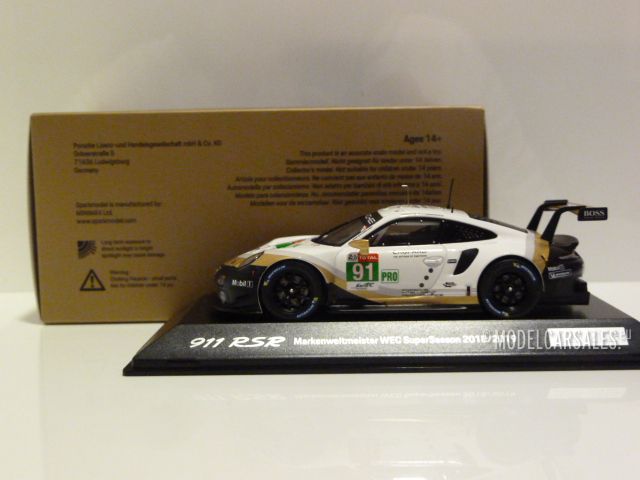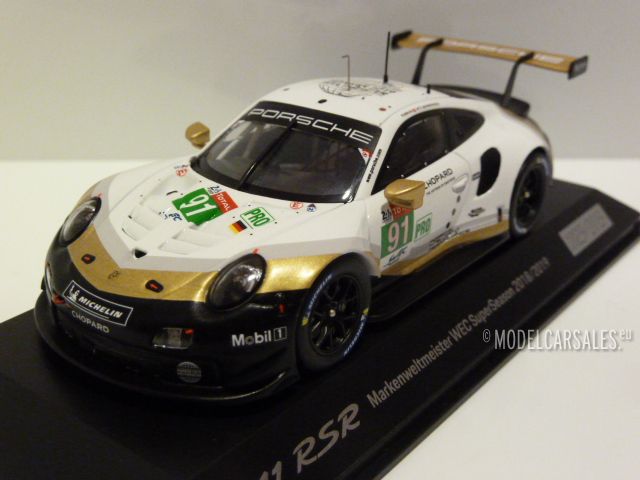 WAP0201480LRSR Spark Porsche 911 (991 II) RSR White W/ Black/gold 1:43 #91 World Champion WEC SuperSeason 2018/2019 2nd 24h LeMans GT Class